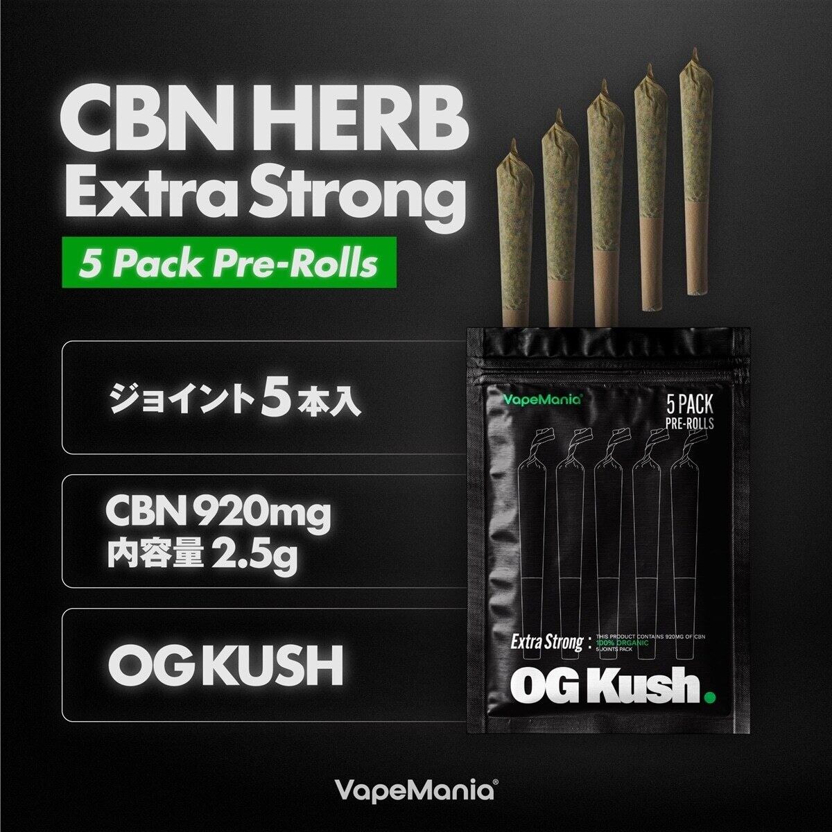 VapeMania OG Kush CBN ハーブ Extra Strong ジョイント5本セット